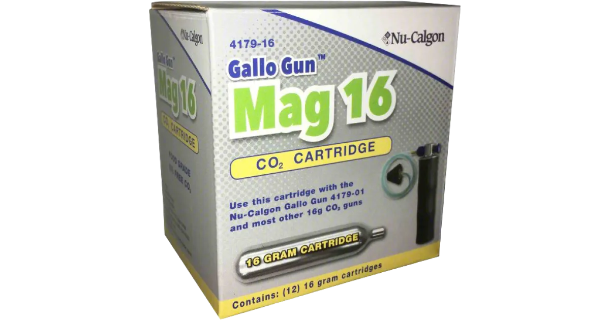 MAG 16 (16 GRAM)CO2 CARTRIDGES 12/CASE Breadcrumb Home / Products / Parts / Pipe, Tubing, and Hose / Drain Cleaning Loading... Mfg Part #: 4179-16 Brand: Nu-Calgon Part Description: Mag 16 (16 Gram) CO2 Cartridges Case Quantity: 12/case